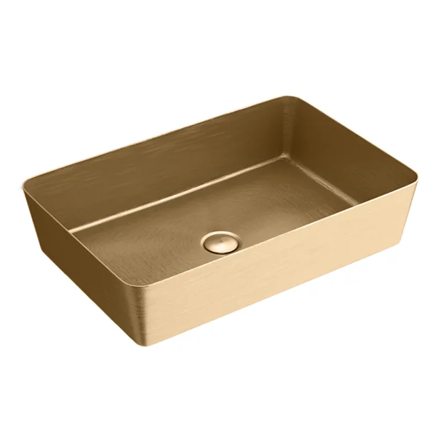 Arezzo Brushed Brass 340 x 520mm Rectangular Stainless Steel Counter Top Basin + Waste
