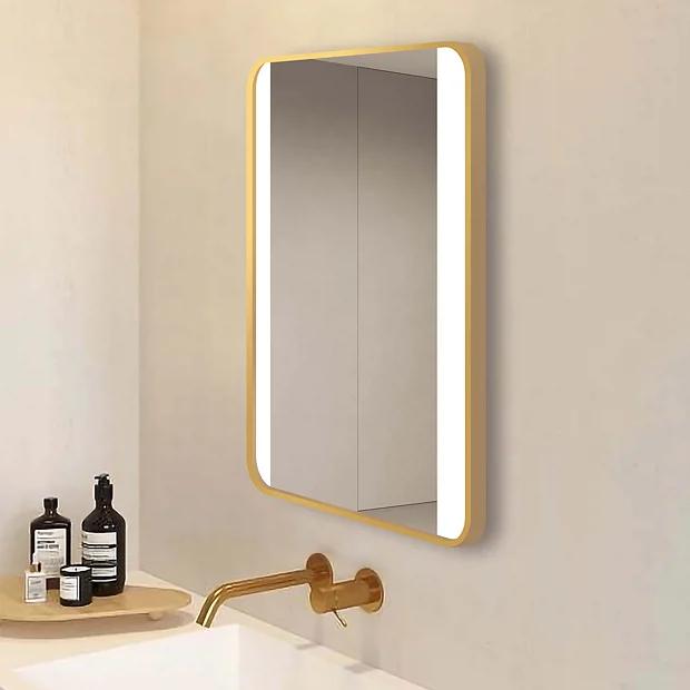 Arezzo Brushed Brass 500 X 700mm Rectangular Illuminated Strips Bathroom Mirror