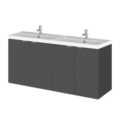 Hudson Reed 1200mm Grey Avola Full Depth Wall Hung Unit & Double Basin
