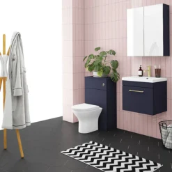 Arezzo Blue Wall Hung Sink Vanity Unit + Toilet Package With Brass Handle