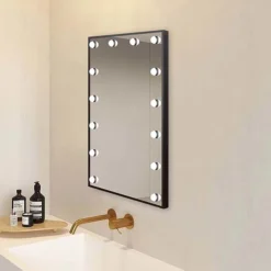 Arezzo Bulb Matt Black 500 X 700mm LED Illuminated Mirror With Motion Sensor + Anti-Fog