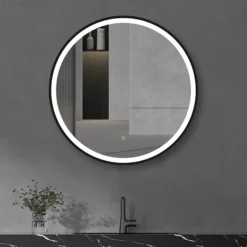 Arezzo Matt Black 700mm Round LED Illuminated Anti-Fog Bathroom Mirror