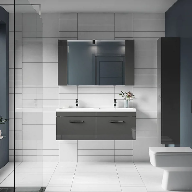 - This sleek gloss grey finish compliments any modern bathroom and creates a designer look