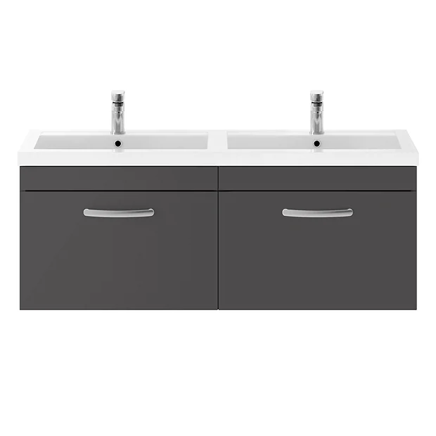 Brooklyn 1205mm Gloss Grey Wall Hung 2 Drawer Double Basin Vanity Unit
