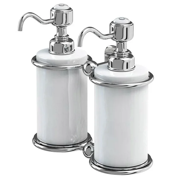 This double soap dispenser is part of the Burlington range of bathroom accessories, manufactured to the highest standards whilst retaining a traditional design.