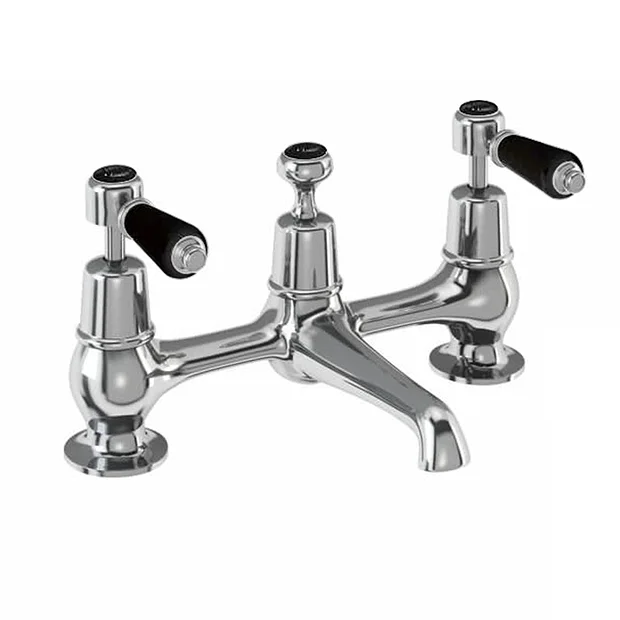Burlington Kensington Black Bridge Basin Mixer with Plug & Chain Waste