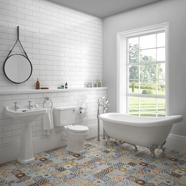 The elegant Carlton classic roll top slipper bathroom suite features a stylish traditional white ceramic 2 tap hole basin with full pedestal, a quality close coupled toilet with luxury cistern lever handle and a superb free-standing roll top slipper bath made with double skinned acrylic with chrome plated period style feet. Perfect for providing a traditional look in any home.