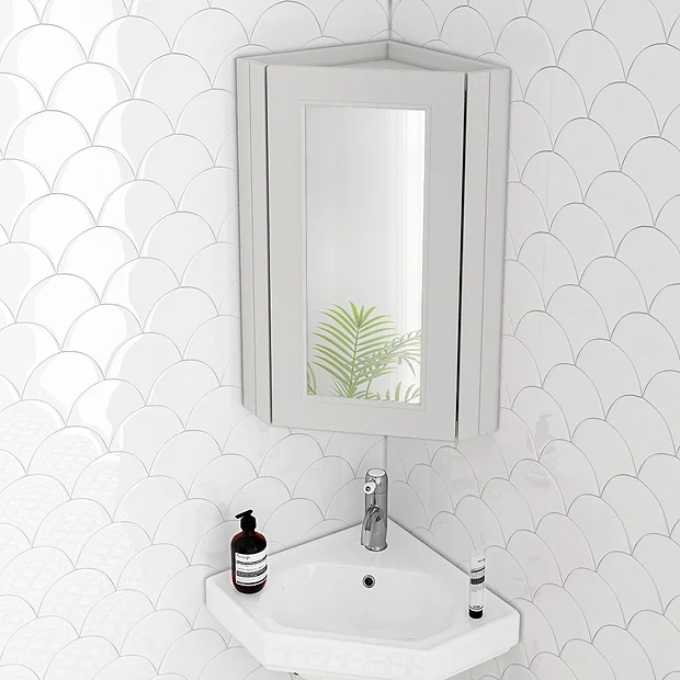 Embrace a traditional interior style in your bathroom with the Chatsworth Grey Corner Mirror Cabinet, providing a practical storage solution to suit most needs, especially where space is at a premium. The tongue and groove side panelling and chic satin grey create a countryside elegance. More than just a design feature – the Chatsworth bathroom cabinet has plenty of space for your cosmetics and a soft closing mirrored door for a peaceful environment. Pair your wall hung bathroom mirror cabinet with the matching Chatsworth Traditional Corner Vanity for a matching look in your bathroom.
