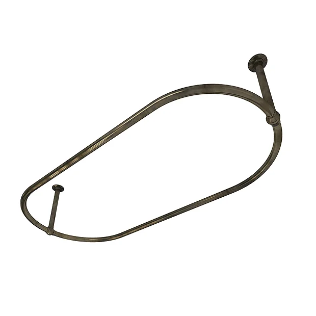 Create a cosy washing enclosure and protect your floor from splashes with this elegant Traditional Antique Brass Oval Shower Curtain Rail. The sleek design of this ceiling mounted rail blends a period look with antique brass steel tubing that’s exceptionally durable. It works especially well with freestanding baths, creating a luxury retro atmosphere in your space. This antique brass shower curtain rail comes with two traditional ball joints and flange ceiling supports, making it straight forward to assemble and mount.