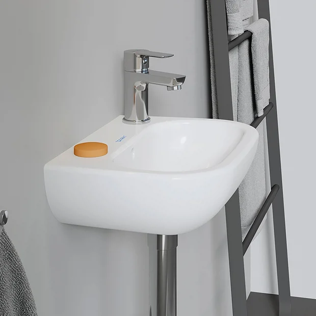 The D-Code 360mm handrinse basin is a stylish and practical upgrade for cloakrooms and en-suites. The basin features a softly rounded rectangular shape with a wide surrounding rim. Made from high quality ceramic and finished in alpine white, this basin has a built-in overflow and the choice of a left or right hand punched tap hole.