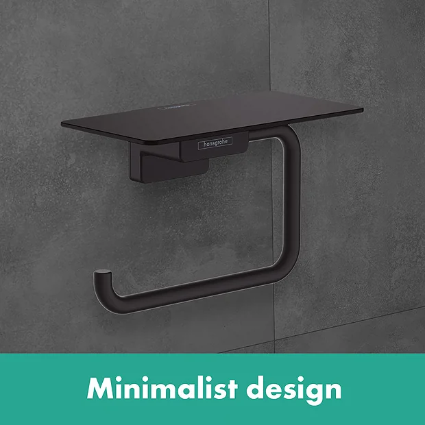 hansgrohe AddStoris Matt Black Toilet Roll Holder with Shelf – 41772670