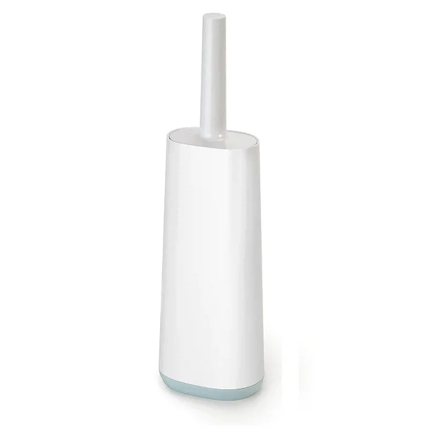 The Joseph Joseph Flex Smart toilet brush and holder features a flexible, D-shaped head that reaches all areas, even under the rim. Unlike conventional toilet brushes that hold dirt and liquid and with bristles that distort over time, the Flex Smart has widely spaced bristles that prevent dirt clogging, allowing liquid to drain quickly and minimising drips between cleaning and storing.