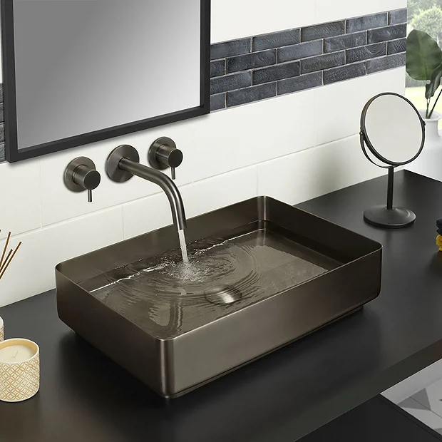 The stunning Vos brushed black rectangular counter top basin will create a focal point in any bathroom. Made from premium grade 316 stainless steel, the basin comes finished in an eye-catching brushed black finish and is supplied with a matching waste.