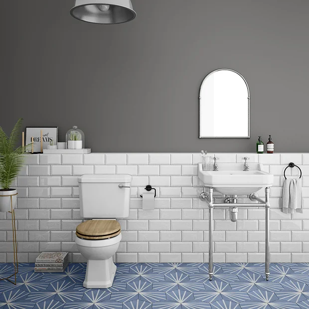 Keswick Traditional Wall Mounted Basin & Chrome Wash Stand – 560mm Wide