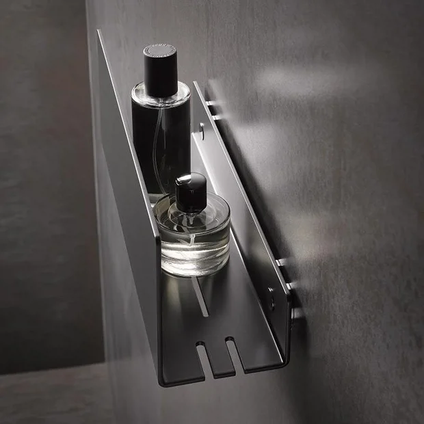 This shower shelf features a minimalist design and sleek matt black finish. Designed by Keuco of Germany, each solidly engineered shower shelf is built to last and features chic, fuss-free styling that will complement any modern scenario.