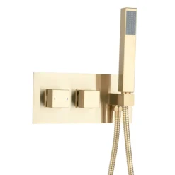 Arezzo Brushed Brass Square Concealed Thermostatic 2-Way Shower Valve With Handset