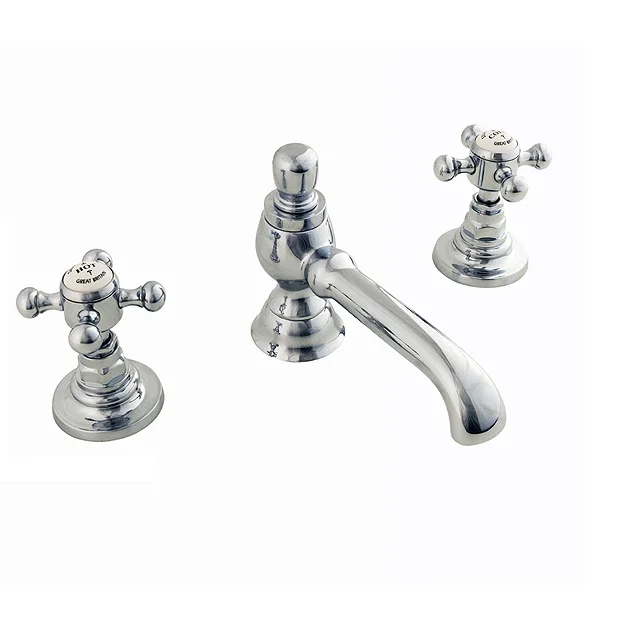 The stylish Victorian traditional 3 tap hole deck mounted basin tap, featuring a classic design which will bring a touch of sophistication to your bathroom. Manufactured from solid brass with a stunning hand polished chrome finish and engineered to the highest possible standards. Comes with a 5 year guarantee.