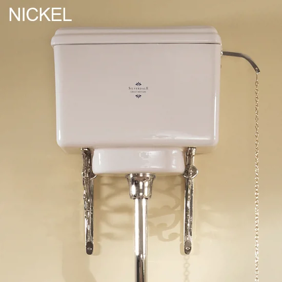 Available with either chrome, incalux (Gold) or polished nickel luxury high level fittings kit. Fittings kit includes – flush pipe, brackets, ceramic disc & ceramic pull handle with decorative lettering.