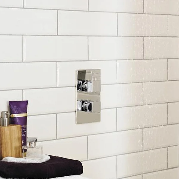 The Vibe concealed minimalist thermostatic twin shower valve with rectangular plate from Ultra offers a simple shower solution with a neat finish and is suitable for use with all water systems.