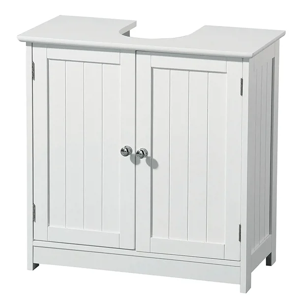 This excellent white under sink bathroom cabinet fits around most sink standard pedestals to make the most of your space. Made from MDF with a painted white wood finish, the neutral colour will fit in with any bathroom decor.